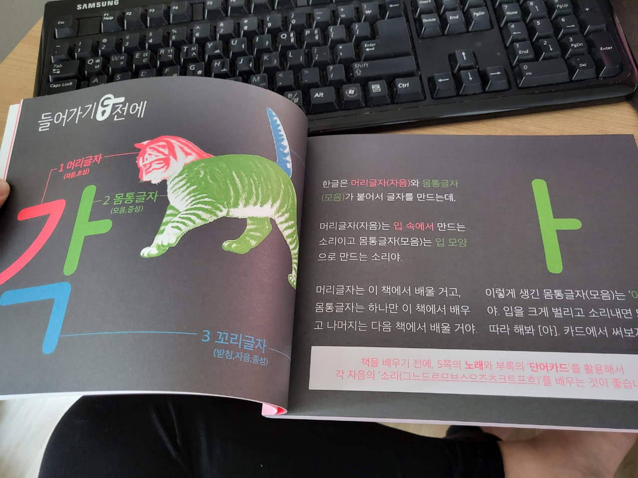 아직 한글 공부도 제대로 모르고, 가나다, 아야어여, 자음 모음, 받침 표, 등등을